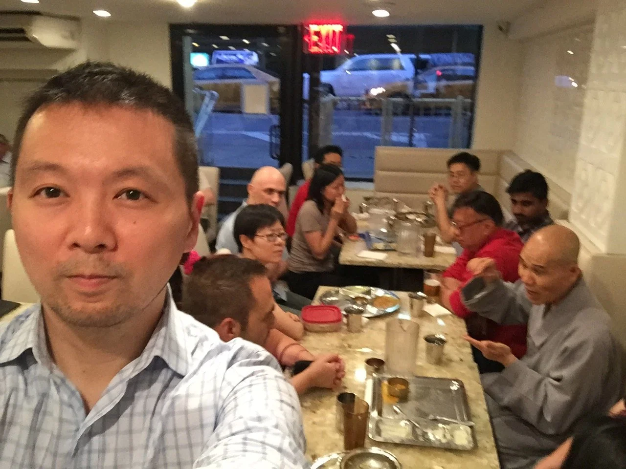 Dinner and Discussion event at a vegetarian/vegan Indian restaurant. Ven Guo Xing of Dharma Drum Mountain kindly gave his time to answer questions directly to our members.